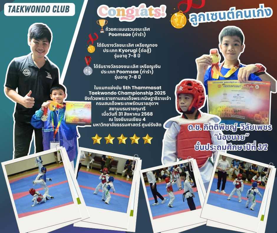 นักเทควันโดรุ่นเยาว์ ด.ช. กิตติพิชญ์ วิลัยเพชร น้องนาย ชั้นประถมศึกษาปีที่ 3/2