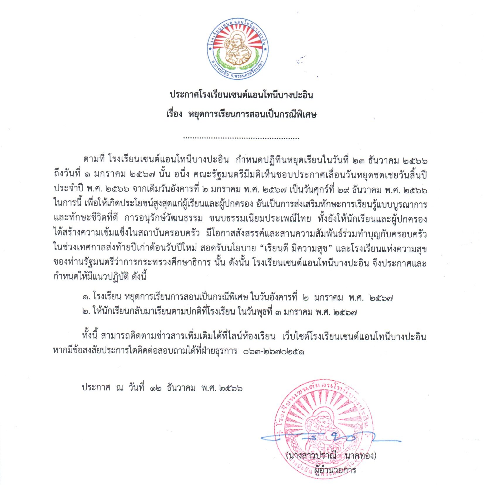 โรงเรียนเซนต์แอนโทนีบางปะอิน น…