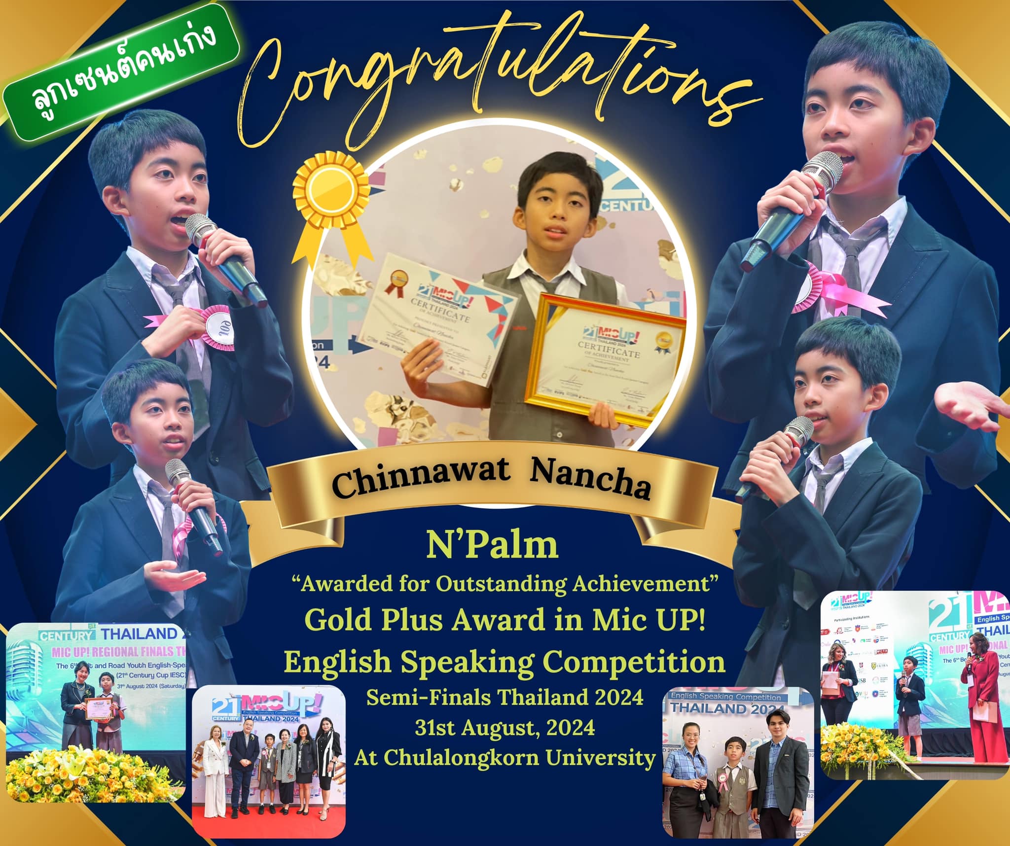 ร่วมแสดงความยินดีกับน้องปาล์ม เด็กชายชินณวรรธน์ นานช้า นักเรียนชั้นประถมศึกษาปีที่ 5/1 ที่ได้รับรางวัล Gold Plus ในรอบ Semi-Final ทำให้ผ่านเข้าสู่การแข่งขันรอบ Final