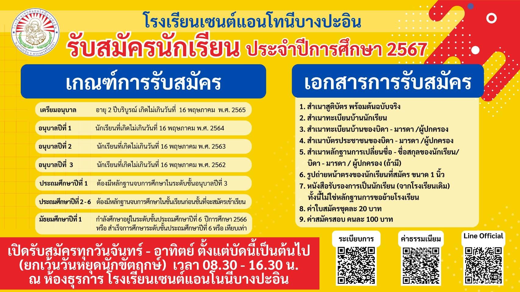 โรงเรียนเซนต์แอนโทนีบางปะอิน Post Views: 592 แนะแนวเรื่อง เปิดรับสมัครระดับชั้น เตรียมอนุบาล ถึง มัธยมศึกษาปีที่ 3 Congratulations #ลูกเซนต์คนเก่ง