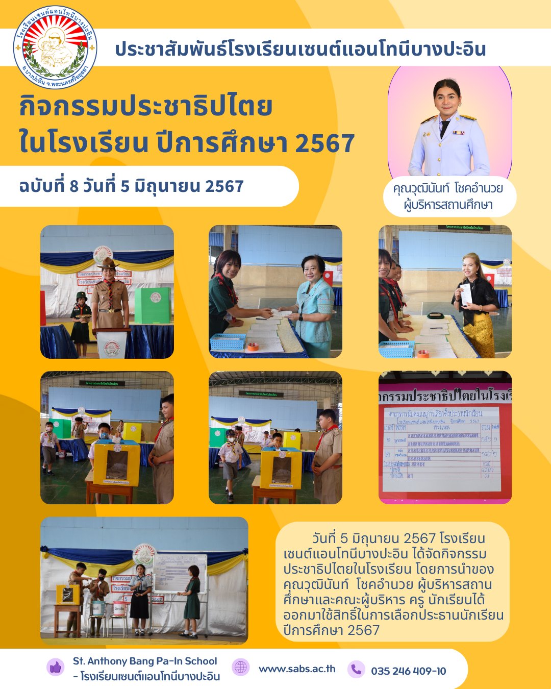 กิจกรรมประชาธิปไตยในโรงเรียน โดยการนำของ คุณวุฒินันท์ โชคอำนวย ผู้บริหารสถานศึกษาและคณะผู้บริหาร ครู นักเรียน