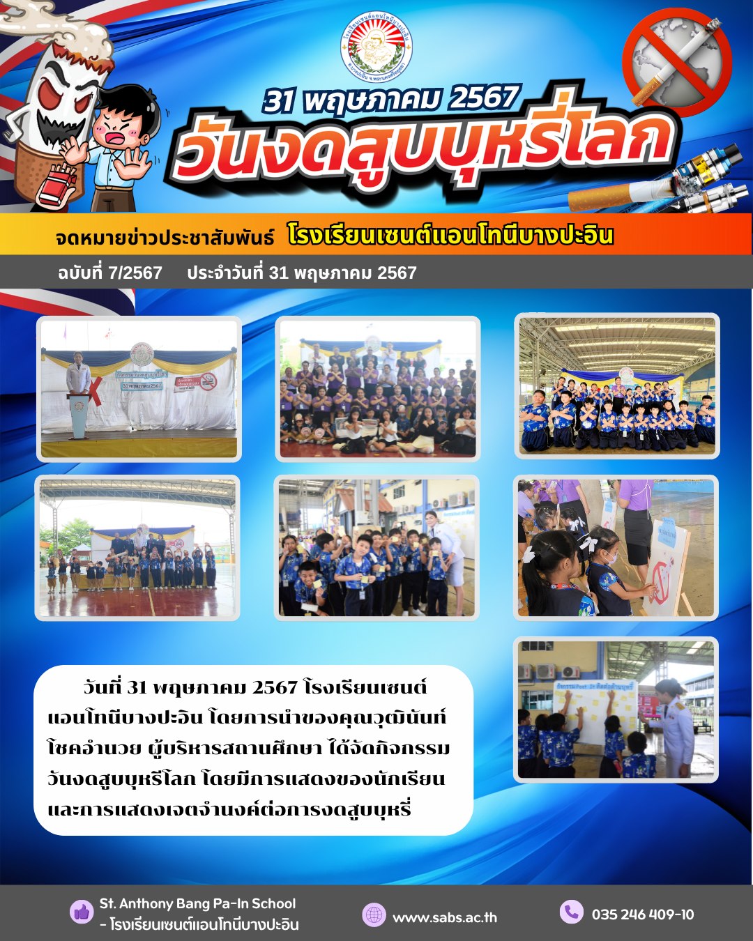 กิจกรรมวันงดสูบบุหรีโลก โดยมีการแสดงของนักเรียนและการแสดงเจตจำนงค์ต่อการงดสูบบุหรี่
